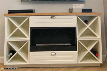 Биокамин в тумбе с винными полками
